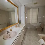 Der er 3 badeværelser som har håndklæder, badelagner og en hårtørrer samt en bruser, et bidet og et badekar.